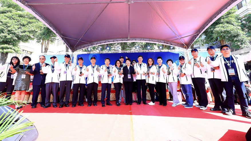 盧市長受邀頒獎表揚17位傑出校友,現場許多師生爭相合照,對著盧市長笑說「台中科大歡迎您!」市府教育局長楊振昇、立法委員黃國書、立法委員沈智慧、市議員陳文政、北區區長柯宏黛等人今日也出席校慶典禮獻上祝福。