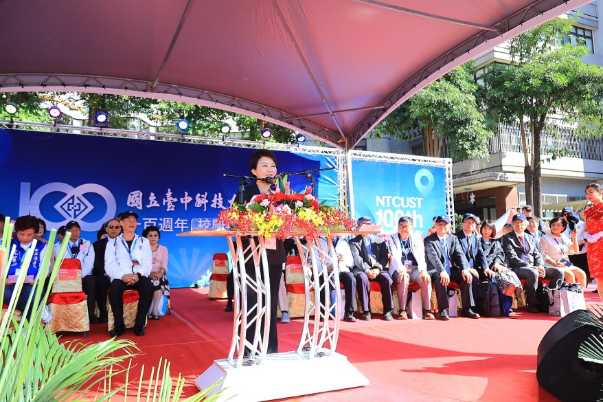 [記者黃嘉雯/台中報導] 台中市長盧秀燕(1)日前往國立台中科技大學,參加建校100周年校慶活動。「十年樹木,百年樹人!」她肯定台中科大辦學卓越,培育無數人才,期勉學校百尺竿頭、更進一步,祝福台中科大百歲生日快樂。