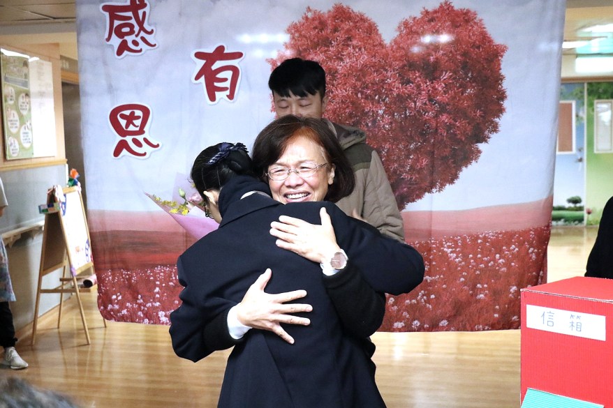 [記者張庭瑋/台中報導] 一封信、一個署名、不確定的日期。臺中慈濟護理之家憑藉不完整的線索,七日完成「尋找貴人」的超級任務,幫委託的陳家人找到鼓勵他們全家的生命貴人劉維秀。雙方獻花見面相擁的瞬間,讓在場見證的團隊都紅了眼眶。