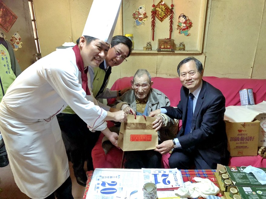 [新媒社記者朱克明/台中報導] 又到了歲末寒冬,農曆年節家人團聚的重要日子,家家戶戶洋溢團圓溫馨氣氛。但是對於曾經為國家奉獻的獨居榮民來說,卻是備感孤單的日子。台中市榮民服務處與台中榮民總醫院、福華大飯店結合社會資源歲末送暖,募得百份五星主廚年菜,21日由台中榮服處關永忠處長陪同台中榮總許惠恒院長、福華飯店古傳福主廚,特別到成功嶺周遭獨居榮民家中,與獨居長者一起圍爐,讓單身、獨居弱勢榮民長輩感受年節氛圍,一圓與家人圍爐團圓的美夢,不再僅有孤單寂寞陪伴的用餐。