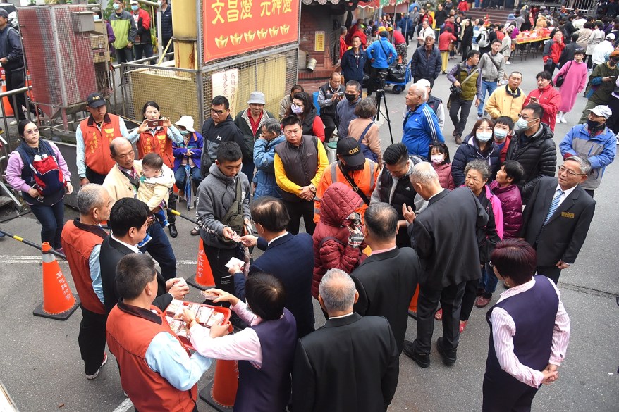 28日一早敦和宮就湧入許多前來接財神求財的民眾,民眾也紛紛利用初四、初五爭相過財神爺橋、摸元寶來祈福求財,企盼鼠年財運亨通,財源滾滾。祈福接神儀式後,林縣長與林主委一起發放鼠年招財錢母,因為索取民眾相當踴躍,敦和宮準備的360餘個錢母很快就被索取一空,林縣長特別加碼縣府鼠年福袋,為民眾增添財氣,場面相當熱絡。