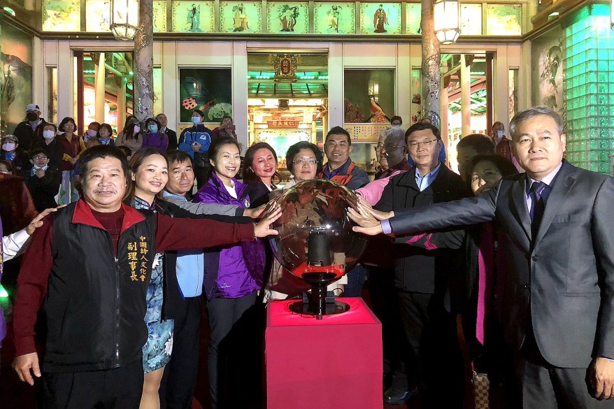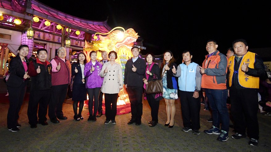 [新媒社 記者黃嘉雯/彰化報導] 「2020彰化月影燈季」,在八卦山大佛前廣場設置玻璃製成的「吉祥火麒麟」主燈,祈求國泰民安、風調雨順,展後特別轉贈給台灣護聖宮,台灣護聖宮於3月28日(農曆三月五日)晚間7:30舉行「台灣護聖宮入火安座九周年慶暨火麒麟點燈儀式」,彰化縣長王惠美應邀與會,與主辦單位台明將企業股份有限公司董事長林肇睢、總經理林肇騫等人一起為吉祥火麒麟玻璃花燈點燈啟用。