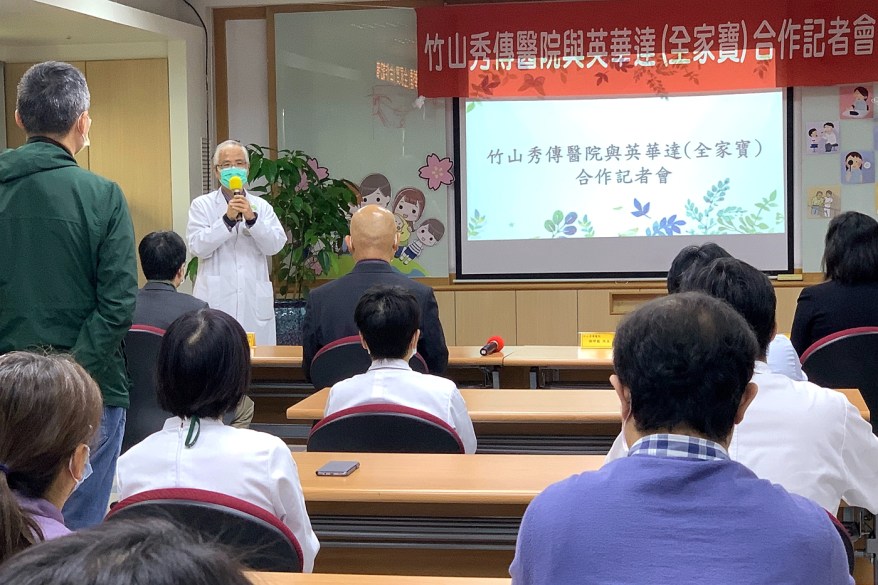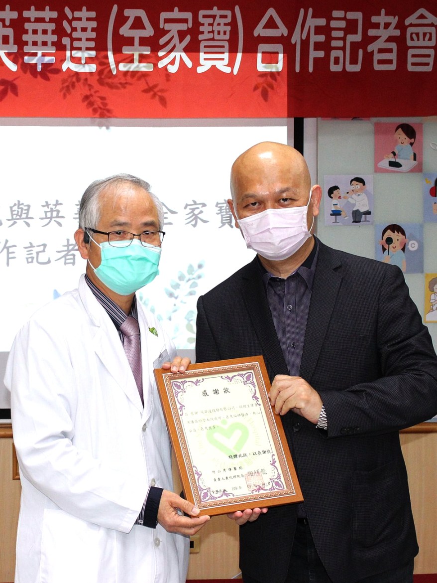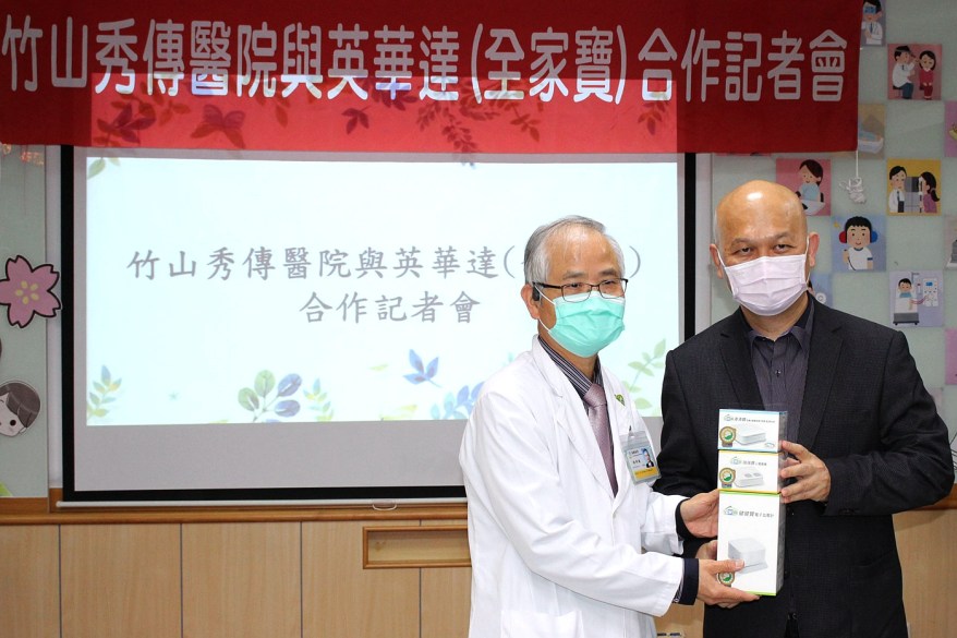 [新媒社 記者張銀澤/南投報導] 2020竹山秀傳醫院與英華達公司於今日(4/1)舉辦「竹山秀傳醫院與英華達(全家寶)合作記者會」,竹山秀傳醫院謝輝龍院長及英華達公司張景嵩董事長親自參與,表達雙方高度重視「全家寶」加入新冠肺炎防疫及偏鄉醫療遠距服務。