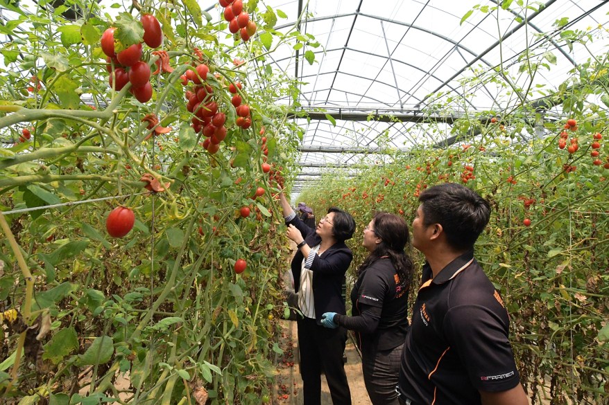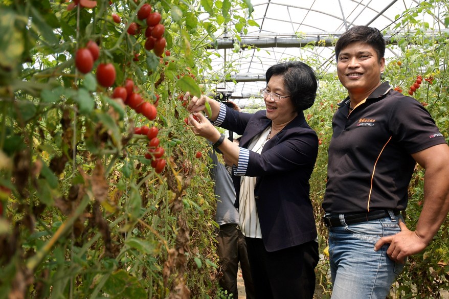 [新媒社 記者黃嘉雯/彰化報導] 彰化縣長王惠美支持在地青農,於4月8日上午參訪青農柯景發位於伸港鄉「景發溫室農場」的設施小果番茄溫室,伸港鄉長曾煥彰等人也一起前往關心,青農柯景發曾是科技廠長,變為農場場長,是秀水鄉蔬菜產銷班第二班班員,曾獲106年度全國農業創新經營管理經驗分享競賽冠軍,「景發溫室農場」有別於一般溫室,在栽培管理上結合農業科技方式進行控管,溫室自動化農場栽培無毒番茄,雖然目前已屆小番茄採收尾期,但仍能維持一定的品質及甜度,讓消費者在這段時期也能吃到兼顧口感與風味的玉女小番茄。
