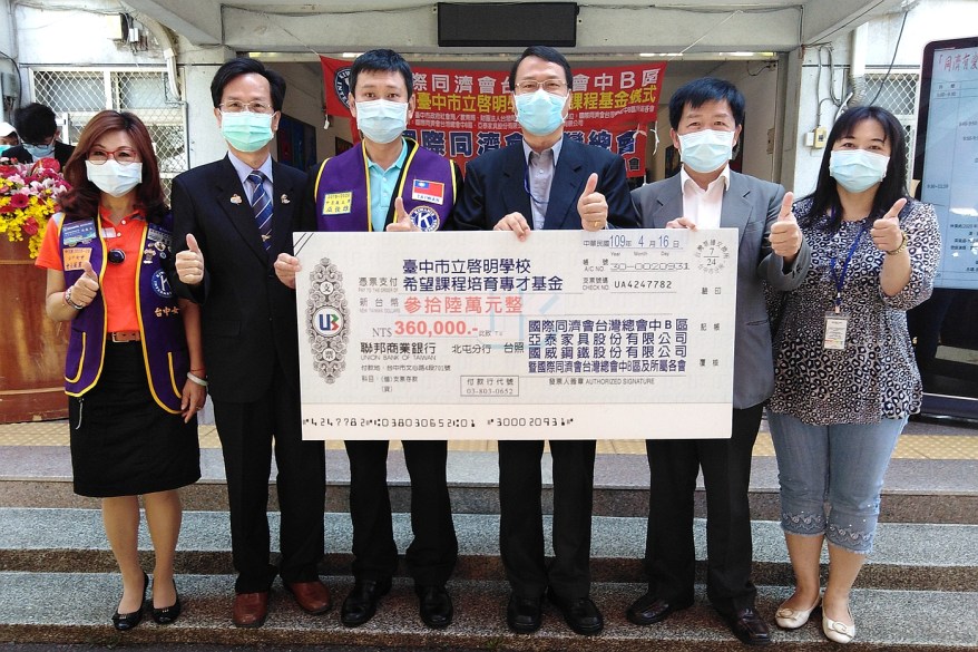 [新媒社 記者張銀澤/台中報導] 2020國際同濟會台灣總會中B區愛不中斷,秉持「關懷兒童,無遠弗屆」的理念,於民國105年起贊助台中市立啟明學校「希望課程」特別學習計畫,108年至110年更與亞泰家具公司聯合捐贈,分3年贊助108萬元經費,支持視障學生學習音樂、繪畫、圍棋、第二外語等的夢想。