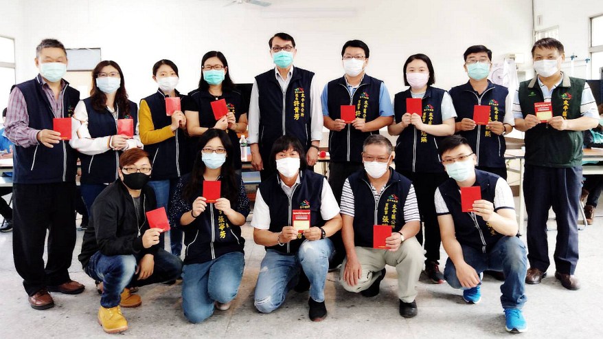 太平區截至4月15日止居家檢疫人數共計600多人,為感謝第一線民政人員不分晝夜維護區民健康安全而努力,臺中市太平區公所於今日在中平里活動中心舉辦之「臺中市太平區公所109年嚴重特殊傳染性肺炎第13次應變暨登革熱防治第6次工作會議」會中區長許貴芳代表市長盧秀燕頒發防疫獎勵禮券慰勞防疫第一線民政人員的辛勞。