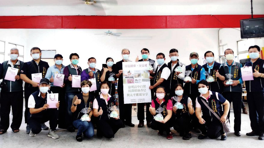 [新媒社 記者張銀澤/台中報導] 新冠肺炎疫情持續延燒,為感謝太平區公所第一線防疫人員不辭辛勞堅守崗位,慈明高中主動致贈香皂為其加油打氣,為此區長許貴芳深表謝意,並向各機關、里長及里幹事第一線防疫人員致敬及受贈,期盼同心協力,共同抗疫。