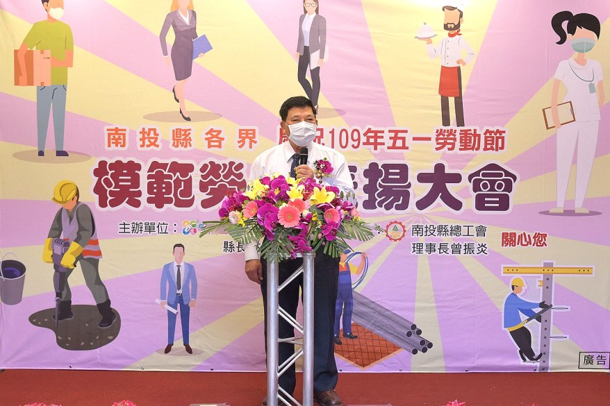 [新媒社 記者張銀澤/南投報導] 南投縣府表達對勞工的謝意,縣府於30日「五一勞動節」前夕,在南投市洪鹿餐廳舉辦「南投縣109年度模範勞工表揚大會」,共有95位各階層工作領域的模範勞工受到事業單位肯定及推薦,副縣長陳正昇特別頒獎表揚,並代表縣長林明溱,感謝所有勞工為南投經濟發展及各項產業的付出與貢獻。