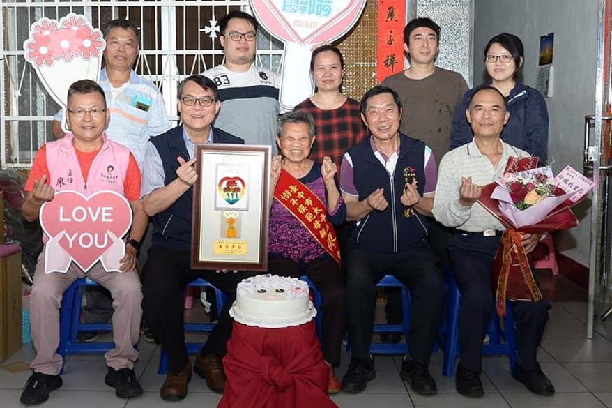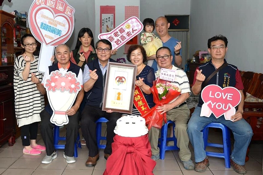 今年受表揚模範母親最高齡(90歲),是中興里所推薦的廖郭荶女士,育有6名子女,早年食指繁浩,生活堅困,勤儉持家、無怨無悔,給後輩子孫立下良好模範。