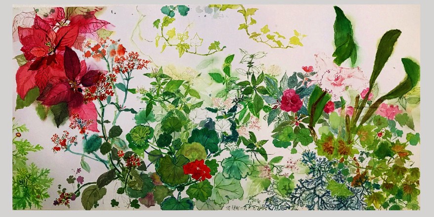 結合中國傳統繪畫的思想、特點,經由寫生實踐中觀察與印證-傳統繪畫的美學思想和筆墨運用,期許以筆墨與形象的鍛鍊修煉心性,漸次探索天地、心靈、宇宙,以達傳統中國美學思想「天人合一」之境界,同時能展現美好、祥和與人分享以及表達對這片土地的感謝之情。開幕導覽為 5/9(六)上午10:30,歡迎對彩墨畫有興趣的朋友前來參與,由莊惠青老師親自解說創作理念。