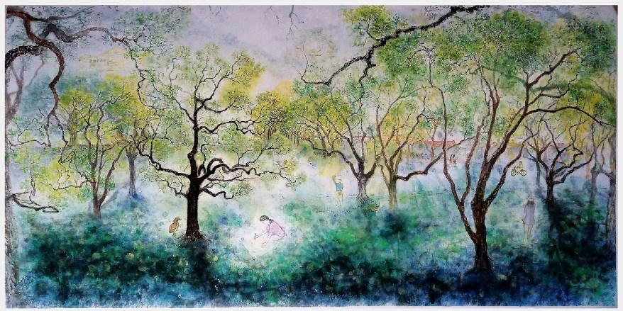 莊惠青老師此次彩墨創作以中興新村之自然、人文景觀為主要題材,觀賞體驗自然之美,欣賞自然的品格,小動物的輕靈、可愛,生活中俯拾皆是的尋常物件,即成了創作的泉源。