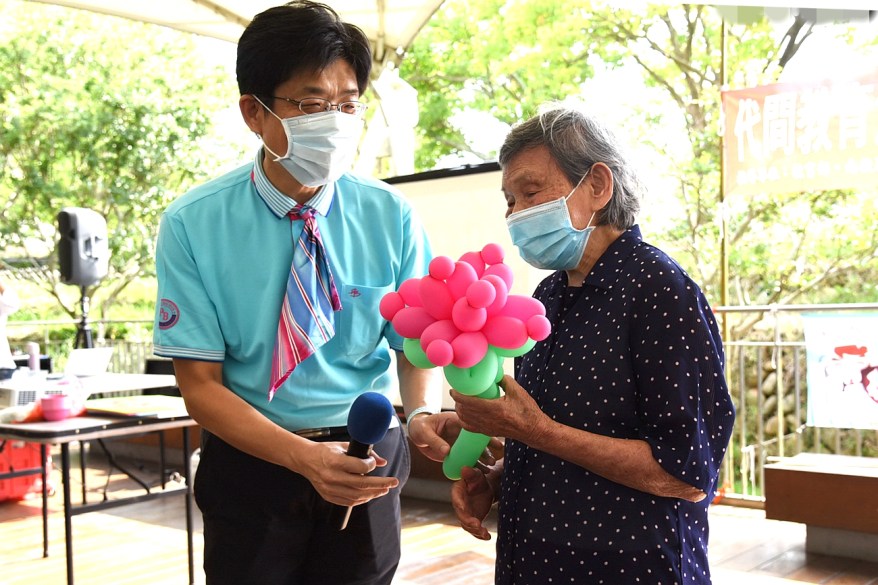 教育處長陸正威、家庭教育中心主任呂建蒼、鳳山社區理事長藍宏仁、西嶺國小校長凃仁雄也都到場出席,並致贈氣球造型康乃馨給現場最年長高齡94歲的藍女士,而另一對就讀國小中年級的藍姓雙胞胎也上台贈送康乃馨給自己的阿公和阿嬤,感謝他們平時的照顧,並大聲說出母親節快樂的感恩祝福。