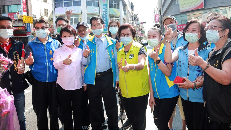 今日盧市長在經發局長張峯源、新聞局長黃國瑋及市議員李中、邱素貞、羅廷瑋、南區區長洪峰明陪同下,前往台中第三市場關心攤商,一同慶祝母親節。