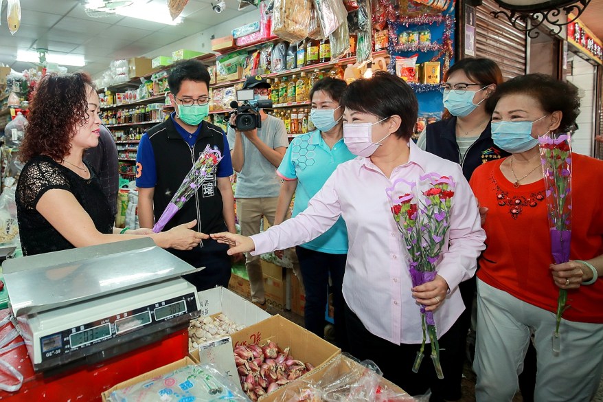 [新媒社 記者張銀澤/台中報導] 2020歡慶母親節,六都唯一的女性市長盧秀燕(10)日前往第三公有零售市場致贈康乃馨,沿途向攤商及民眾獻上祝福,盧市長更親自擔任一日店長,行銷生鮮肉品及蔬果,盼刺激市場買氣。她強調,台中各傳統市場已落實防疫措施,保障攤商與消費者健康,歡迎市民朋友安心逛市場,感受在地人情味。
