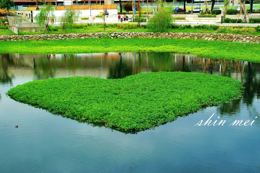 建設局表示,為讓景點更具特色,市府於湖中加碼種植「愛心水草」,心型造型掀起搶拍風潮,湖面搭配落日與湖濱生態,加上周邊圍繞台中產業故事館、建國市場、秀泰影城、興建中的台中車站鐵道文化園區及規劃中的三井LaLaport購物商場等景點,打造生態夢幻景點,帶動東區人潮。