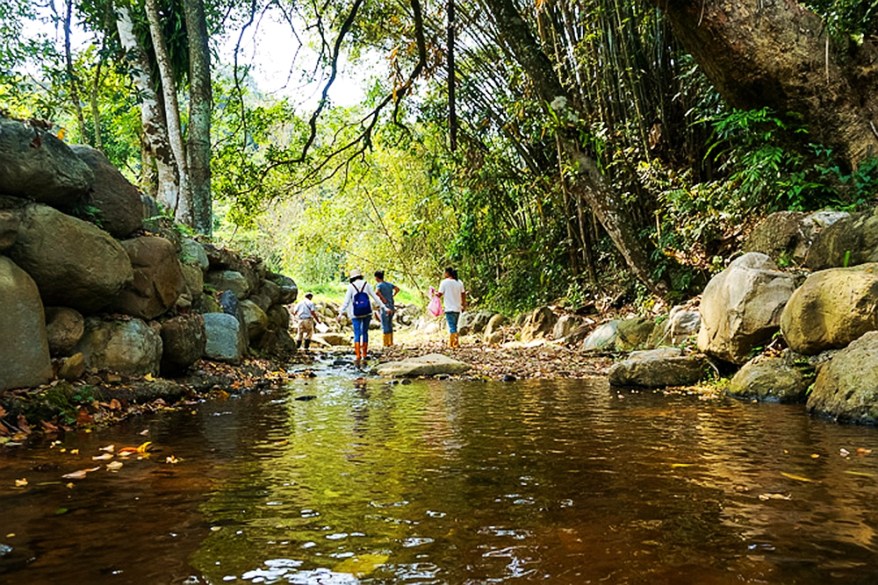 這條山邊的溪流沒有汙染,溪水只到小腿肚,魚蝦生態探索就在安全的溪流中進行,由專業的解說員帶大家認識各類魚蝦植物。