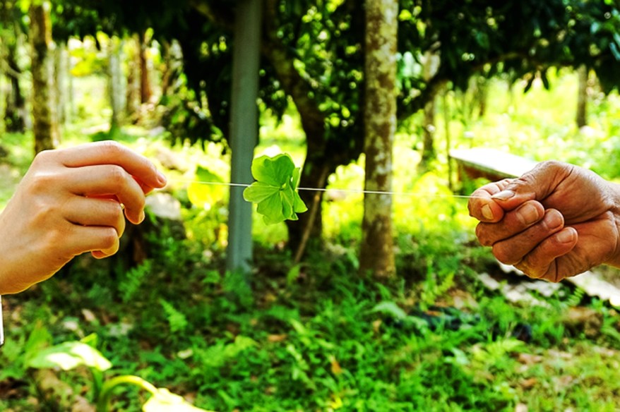 穿上主辦單位準備的雨鞋,從馬路旁的小徑走到溪水旁,放眼望去只知草木。但解說班班長卻能夠指著身邊的多種植物,說出植物的名字,甚至把酢漿草拿來作玩具。