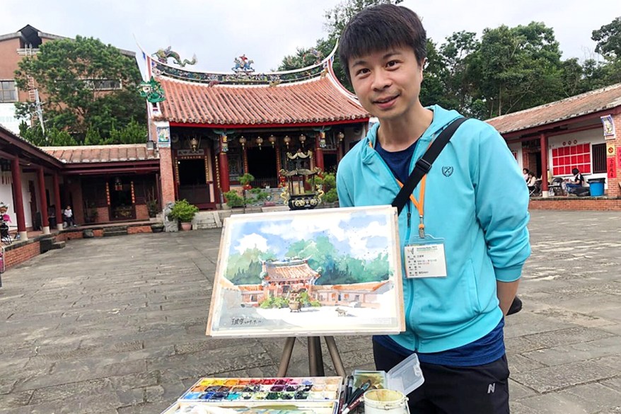 該畫作是由人稱速寫王子的王建傑老師所側寫的明新書院,即便當天飄著細雨,建傑老師依舊能以簡單、清新、充滿暖暖正能量的筆觸,把明新書院畫得如此和煦溫暖。