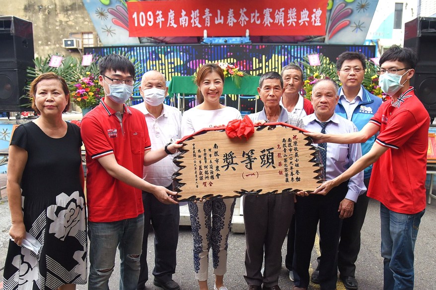 [新媒社 記者張銀澤/南投報導] 109年南投市農會春季青山茶比賽頒獎典禮16日上午在該會前廣場隆重舉行,由該會理事長簡汝權主持,立委許淑華、縣府農業處長陳瑞慶、南投市長宋懷琳都到場致意,簡理事長邀請許立委及陳處長等貴賓一同頒獎給獲獎茶農,並合影留念,儀式簡單隆重。