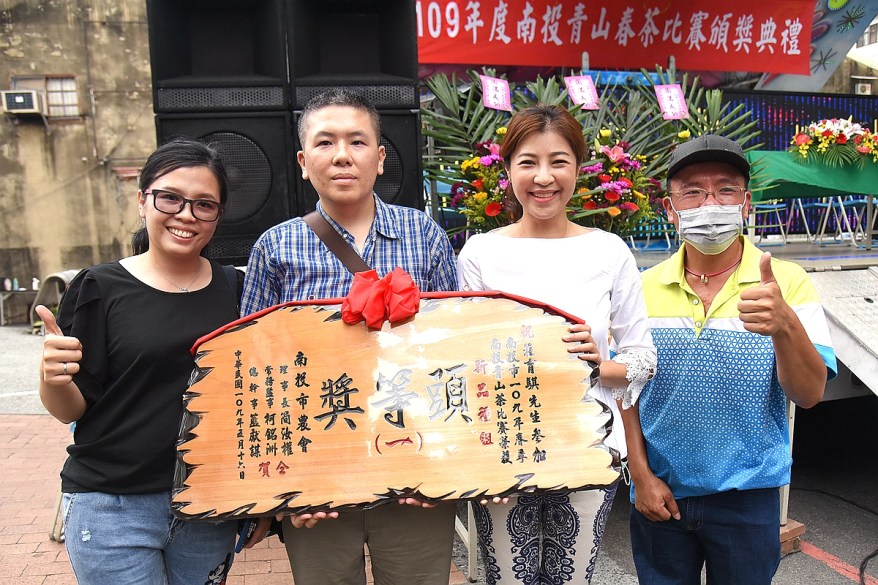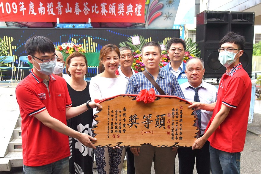 [新媒社 記者張銀澤/南投報導] 109年南投市農會春季青山茶比賽頒獎典禮16日上午在該會前廣場隆重舉行,由該會理事長簡汝權主持,立委許淑華、縣府農業處長陳瑞慶、南投市長宋懷琳都到場致意,簡理事長邀請許立委及陳處長等貴賓一同頒獎給獲獎茶農,並合影留念,儀式簡單隆重。