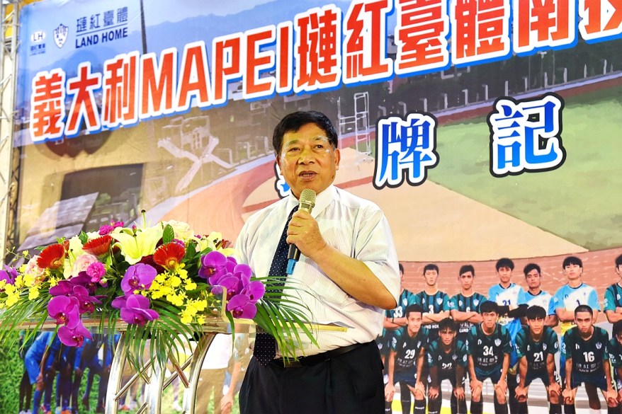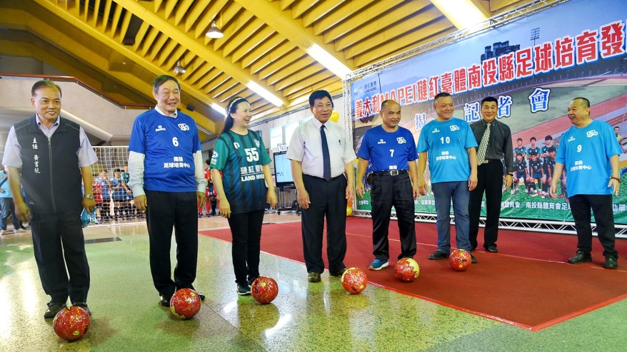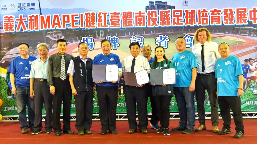 22日上午,縣府在南投縣立體育場舉行「義大利MAPEl璉紅臺體-南投縣足球培育發展中心」揭牌記者會,由副縣長陳正昇主持,議員曾振炎丶臺體大校長林華韋丶璉紅實業有限公司董事長莊瓊紅丶中華民國足球協會副秘書長焦佳弘丶捷克籍兼任足球敎練路卡斯丶南投縣足球委員會主任委員詹文平丶臺體大敎授趙榮瑞及受贈學校校長丶幼兒園園長都到場參與。