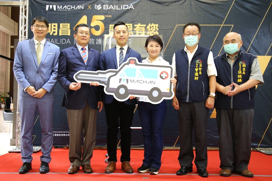 今日捐贈儀式於明昌總部大樓舉行,由市長盧秀燕率領秘書長黃崇典、市政顧問林雲珍、消防局長曾進財、農業局長蔡精強、經發局長張峯源、交通局長葉昭甫、民政局長吳世瑋、財政局長羅仙法、衛生局副局長張瑞麟、新聞局副局長陳佳君及勞動檢查處長邱怡川出席,接受明昌國際工業股份有限公司創辦人張秋龍捐贈的救護車模型與鑰匙及25組耳鼻喉診斷保護隔板,並回贈感謝匾額。立法委員楊瓊瓔、市議員李榮鴻、楊典忠、外埔區長葉聯慶、大安區長周琇茹與多位在地里長以及第五大隊救護大隊大隊長吳章銘及分隊長廖維封到場見證,台中市議會議長張清照也派代表出席。