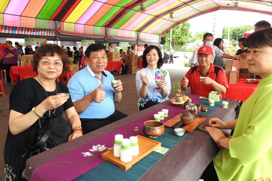 會場除各得獎茶農展售設攤外,竹山鎮農會並邀請竹山茶道協會特設多個茶席,也安排鎮內青農展售紅龍果、蜂蜜、鳳梨、文心蘭等農特產,在周延的量體溫戴口罩等防疫措施配合下,吸引大批民眾前往品茗消費,帶動熱絡買氣。