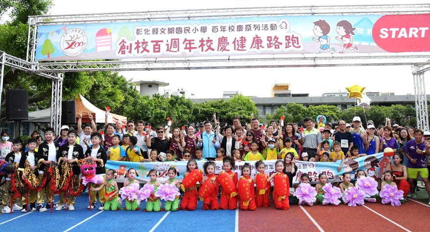 [新媒社 記者黃嘉雯/彰化報導] 文開國小為迎接百年校慶盛典,規劃一系列校慶活動,由學校及二鹿慢跑協會主辦,鹿港鎮公所及學區內8個里協辦,31日一大早在文開國小操場辦理「親子健康路跑」,彰化縣長王惠美和與會貴賓等人出席鳴槍儀式,由王縣長等人倒數後鳴槍,之後親子一起路跑,計850位親子共同參加,全程總計5公里,在經過長久防疫生活,防疫新生活啟動,王縣長期透過這次活動,全家一起來運動,增進親子關係。