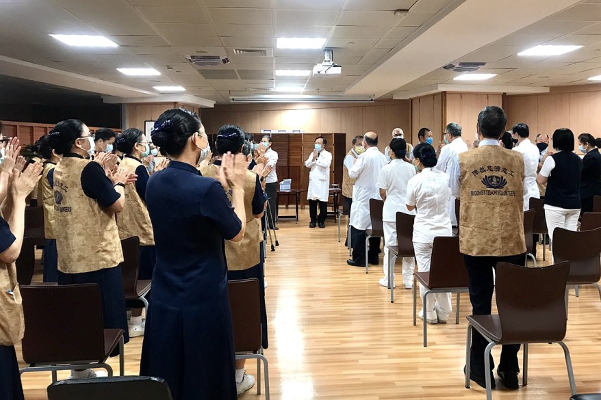 [新媒社 記者黃嘉雯/台中報導] 台中慈濟醫院門診、洗腎醫療志工八日正式恢復服務,相隔97天沒見,簡守信院長形容是親人久別重逢的心情。護理同仁在洗腎室列隊獻上花環與歡迎卡、門診血壓站護理師緊抱志工說有你們真好、來院病人與家屬也都來問候,還有住院病人家屬盼望更進一步開放病房醫療志工來協助。