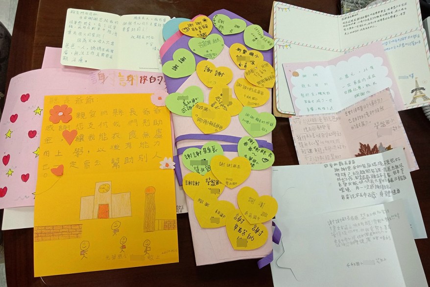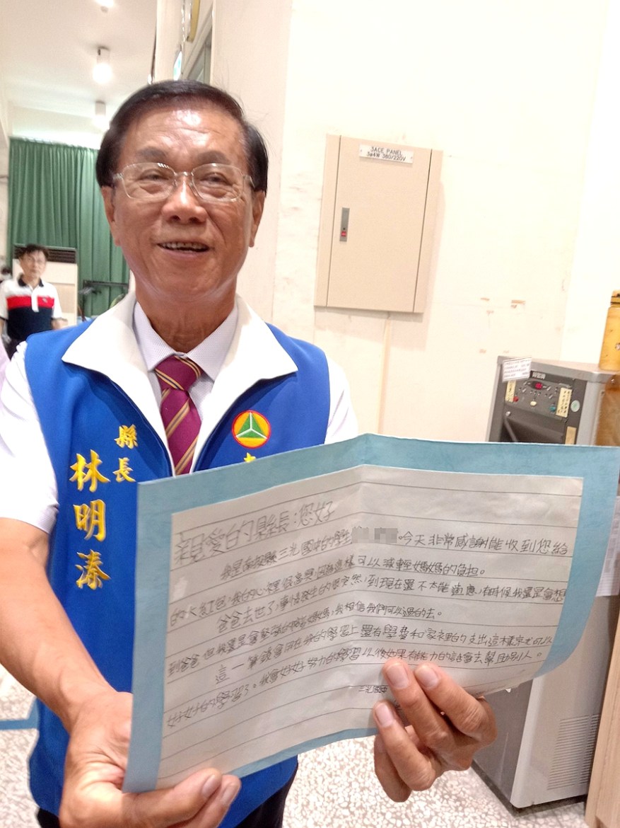 林縣長說,孩子的感謝卡讓他覺得持續推動清寒家庭學生慰助金,變得格外有動力,有個孩子在感謝卡上直述其父新近亡故,得到慰助金馬上能減輕媽媽負擔,所以心裡萬分高興與感謝,「爸爸去世的突然,到現在還很不能適應還是會很想爸爸,但我會堅強陪媽媽,相信我們會過的去,我會好好努力學習,以後有能力就能去幫助別人!」,這就是我們稍微幫助一下就能站起來的勇敢南投孩子啊!