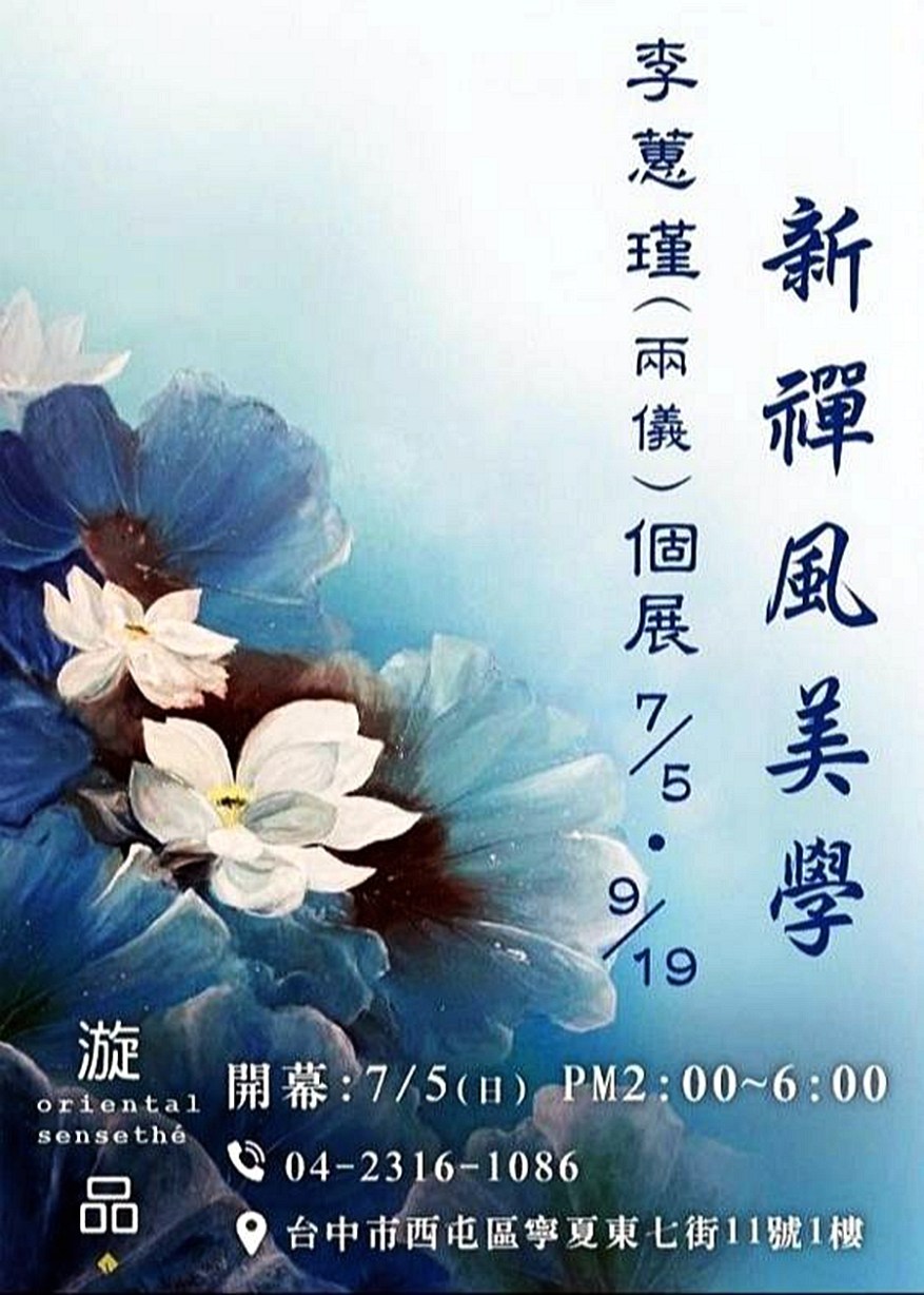台中漩品藝術空間7月5日至9月19日 – 李蕙瑾老師 新禪風創作展 !
