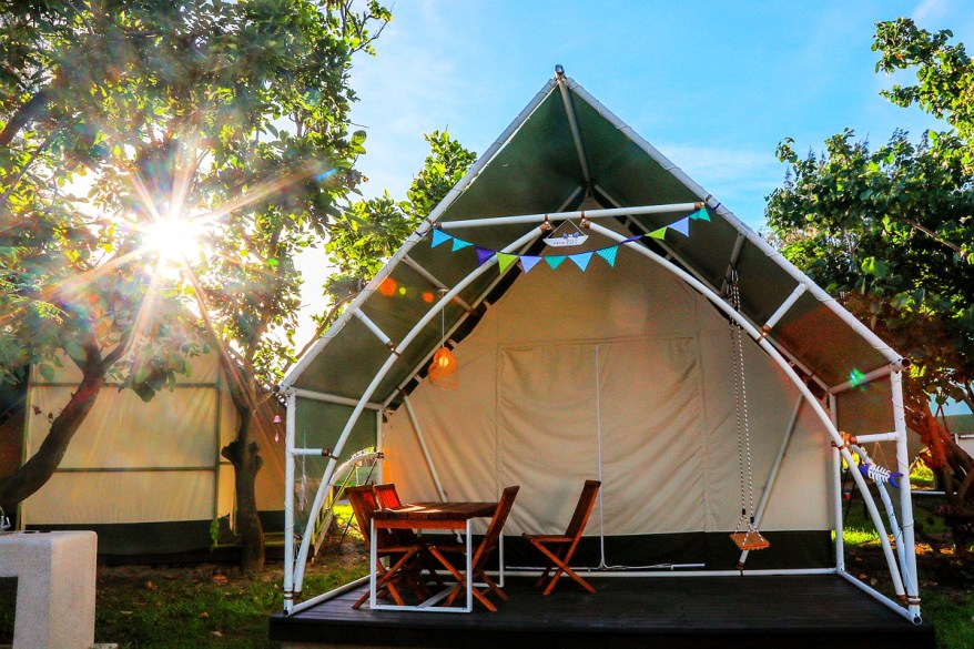陳執行董事指出,「向海那漾」園區規劃成複合式空間,包括豪華露營區、大草皮遊戲區、生態展覽空間、DIY體驗、戶外戲水池,以及海景餐廳和輕食咖啡等區域,一共建置32帳生態旅遊豪華露營帳篷。豪華露營區規劃在防風林,不必擔心強風影響,帳篷分有2人、3人、4人床型,造型風格有汕海、禾風、風野三款;也特別設計能遠眺海景、別具異國情調的「納海木屋帳」,帳內皆備有沙發、電風扇、冷氣機及獨立衛浴設備,戶外還有鞦韆椅,只需要簡單行李,就能徜徉大自然。