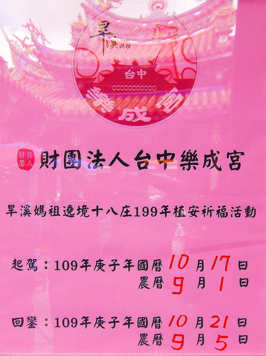 台中樂成宮 媽祖遶境十八庄 – 起駕國曆10月17日-10月21日回鑾 !