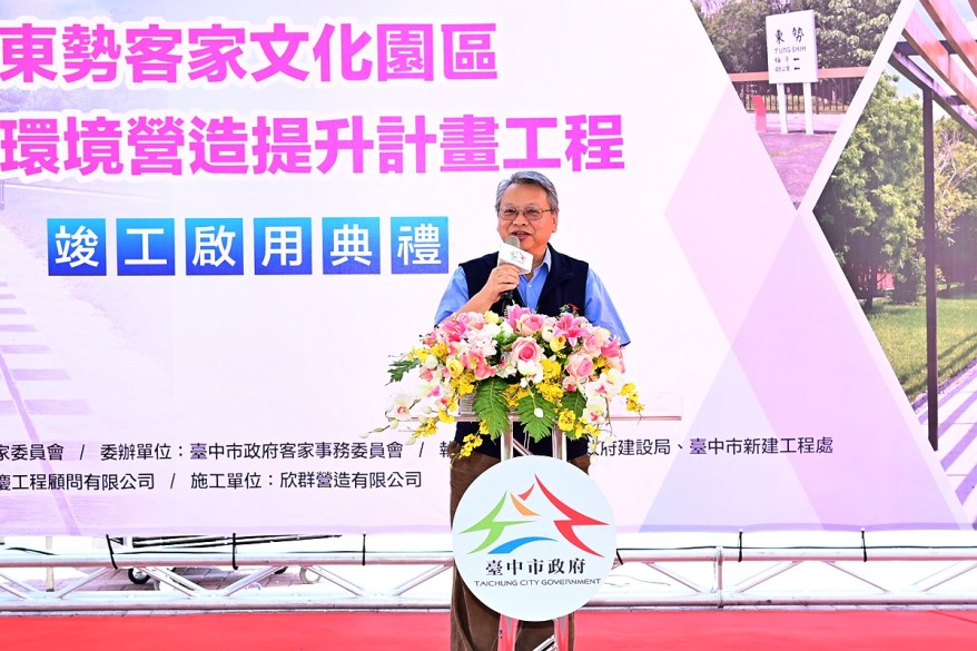 [新媒社 記者張庭瑋/台中報導] 東勢客家文化園區周邊環境營造提升計畫工程於今(5)日舉行「富市台中‧新好客家」竣工啟用及揭牌典禮,副市長令狐榮達代表市長盧秀燕主持。令狐副市長強調,園區改善後將成為「山城新亮點」,結合東豐自行車道,帶來觀光人潮,促進地方經濟繁榮。