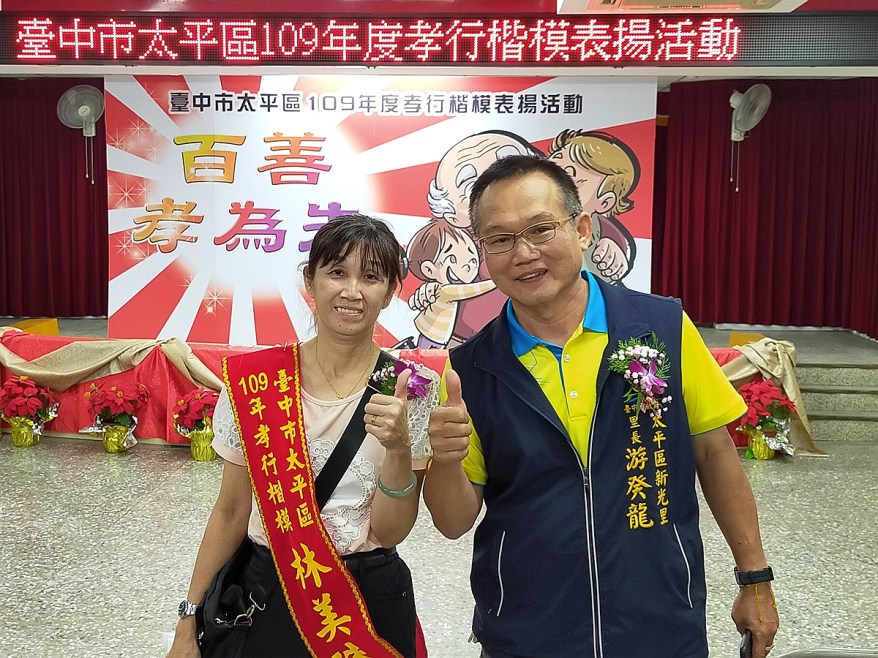 許貴芳區長藉此活動推廣孝行觀念,獎勵孝行楷模,發掘感動人心的孝行事蹟,鼓勵民眾見賢思齊,於生活中具體展現慈孝行動,營造溫馨、和樂家庭,增進社會祥和。對於本區18位孝行楷模,對自己父母盡心盡力、無怨無悔的照顧及付出,為社會帶來的正面能量給予高度的肯定及讚揚;更有人行有餘力推己及人,還擔任鄰長、環保志工、守望相助隊員、愛鄰志工等各種為社會、鄉里服務的工作,令人敬佩。同時邀請大家一起來參加2020第二屆臺中購物節拼經濟,邀請全國民眾都來台中購物消費抽大獎,大獎等著您來喔!