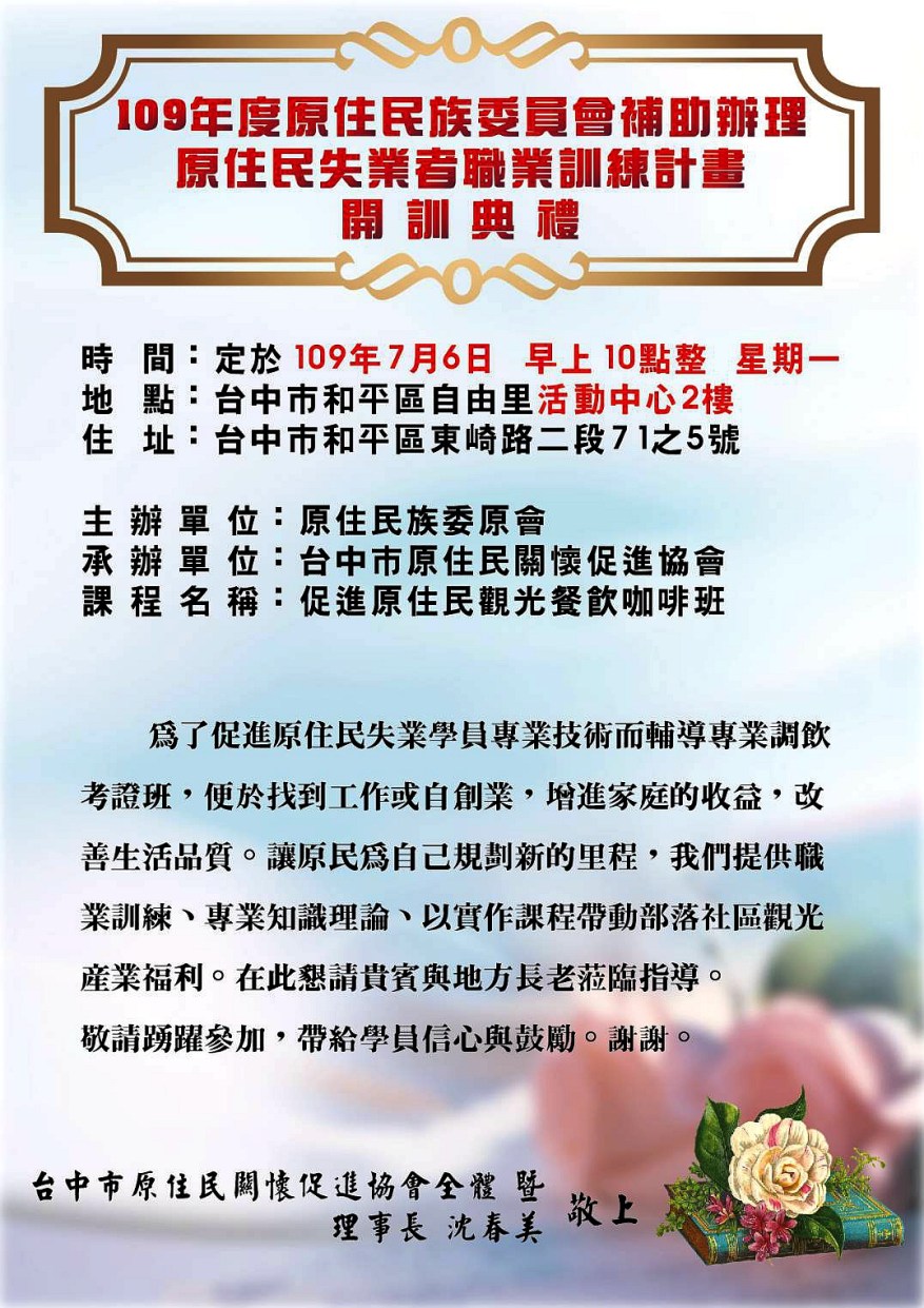 台中原住民關懷促進協會-職訓計畫課程開訓典禮 !