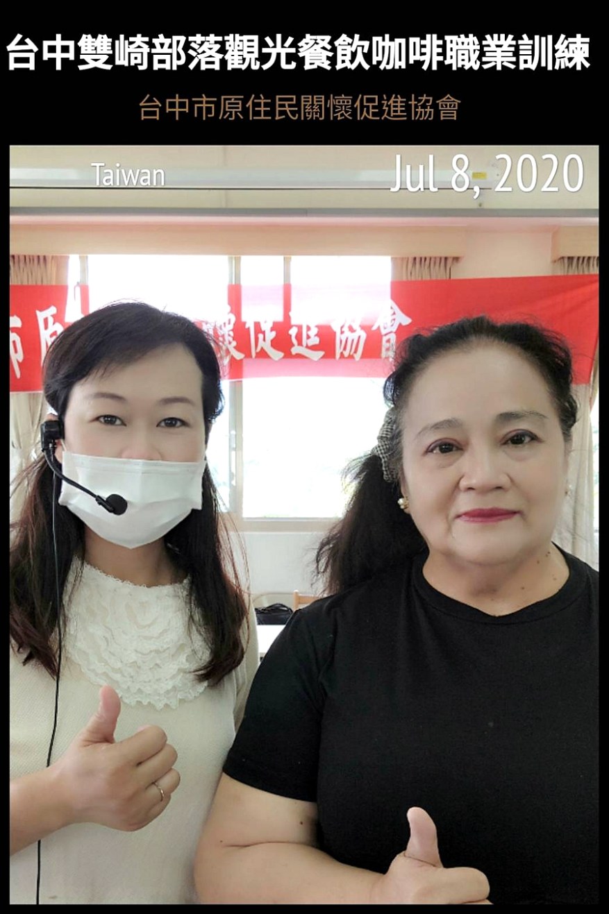 台中市原住民關懷促進協會,理事長沈春美說讓學員學習觀光調飲咖啡的技術,並訓練參加證照考照每個學員非常認真學習,勢必要考上證照在年輕時適合學習的年齡能依照自己的喜好考上多種證照,將來為人師時分享成果時最好的佐證。