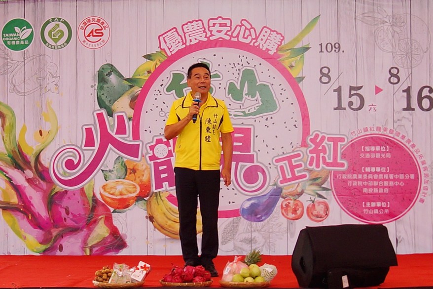 這次活動總共邀集30個攤位,除了竹山農產外,附近鄉鎮如集集鎮、鹿谷鄉、中寮鄉、名間鄉、國姓鄉、魚池鄉共6個鄉鎮共襄盛舉,內容更多元,有火龍果、香蕉、茶、香菇、蔬果、柚子、龍眼等,都是當季的蔬果,鎮長陳東睦表示,這次參展的攤位都一定要有「3章1Q」條件才可以,分別是有機農產品、產銷履歷農產品、台灣優良產品、以及台灣農產生產追朔,所有商品品質保證,定會讓遊客能安心購買,吃得健康。明天還有一天,有興趣的民眾千萬不要錯過囉。