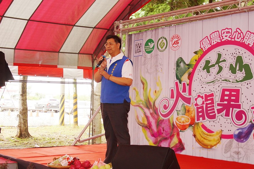 配合農糧署推動在地農產品計畫,竹山鎮公所在南投縣政府的指導下,結合竹山鎮農會、紫南宮、富州休閒農業區協進會、竹山安全農業協會以及保證責任南投縣竹山鎮蔬果運銷合作社..等等團體共同辦理本次活動。火龍果在竹山占地月120甲,主要分布於社寮里、富州里、山崇里、中央里、延正里、中和里、下坪里等區域,1甲地平均有4萬公斤的產值,數量相當可觀,竹山產區以紅肉為主,且甜度營養價值相當高,6-12月正值產期,因為在這期間辦理展售會,要讓民眾吃到最新鮮的水果。