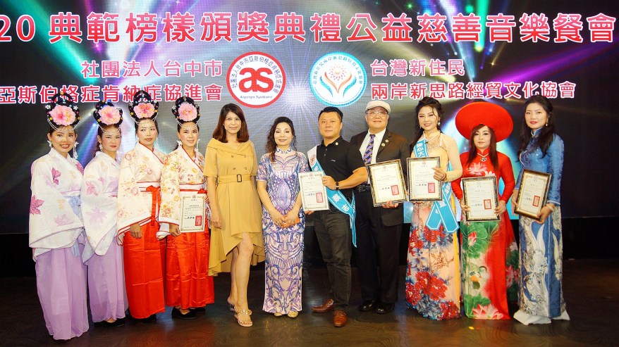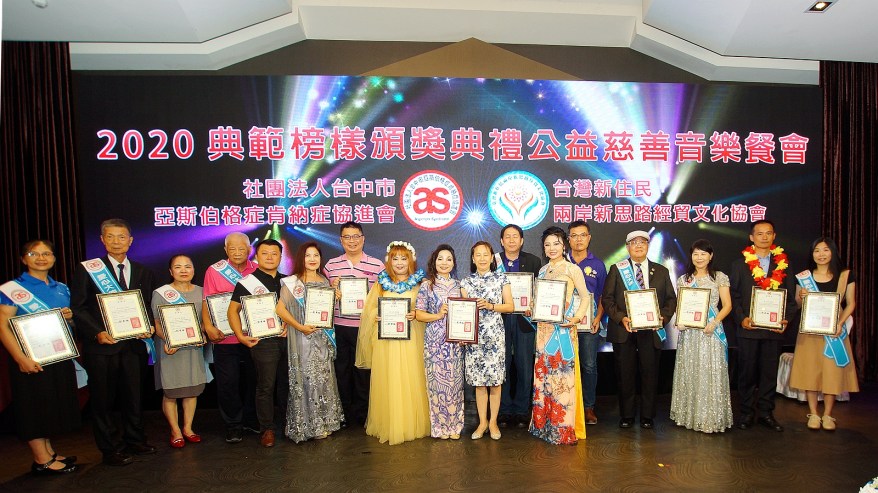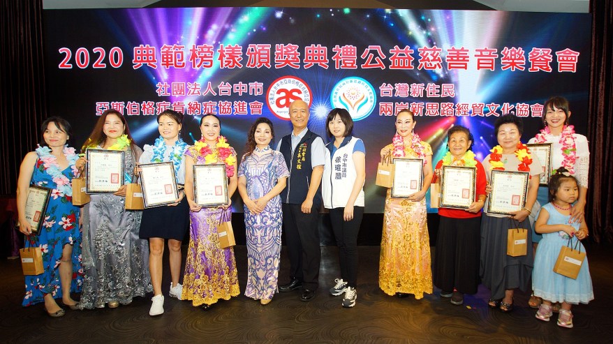 [新媒社 記者張銀澤/台中報導] 2020典範榜樣 頒獎典禮 公益慈善音樂晚會, 8月 16日於台中星時代婚宴會館舉行,母愛偉大、父愛如山。由社團法人台中市亞斯伯格症肯納症協進會,台灣新住民兩岸新思路經貿文化協會聯合主辦,一年一度的模範媽媽、模範爸爸、新住民之光選拔,在近半年收到北、中、南各協會推薦或自薦幾十件報名資料,經過本會初選,決選由本會名譽理事長釋信願法師擔任總評審,本著教養子女有方,重視親子教育,敦親睦鄰,熱心公益,家庭生活美滿,敦品向善,其言行堪為子女楷模表率基準:評選出2020模範媽媽林秋屏、王錦瓶、曹小滿、梁江、陳星彤、陳珮甄、吳羽筑、張織雲。