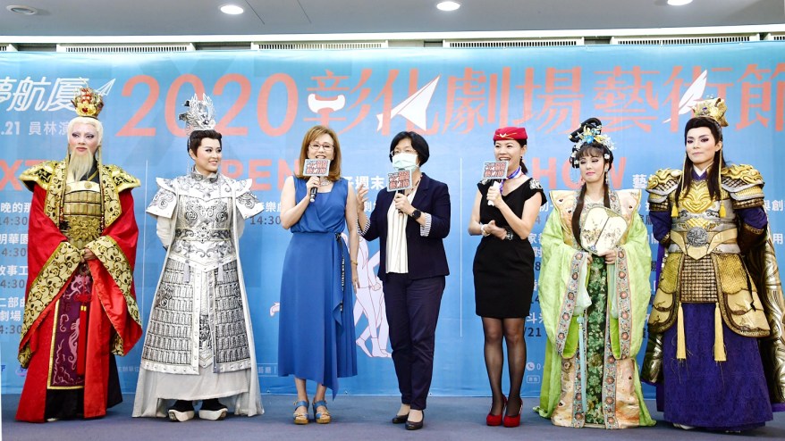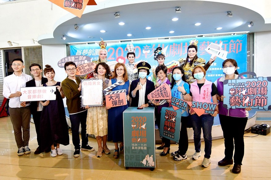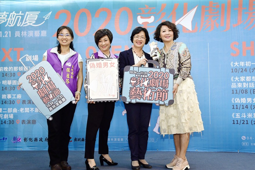 [新媒社 記者黃嘉雯/彰化報導] 彰化縣文化局主辦的「2020彰化劇場藝術節NEXT OPEN SHOW」,將於10月24日至11月21日接連5週,由5個國內優質表演團隊,在員林演藝廳帶來5場精彩的演出節目!今(10)上午在縣府中庭舉行活動記者會,彰化縣長王惠美、故事工廠《偽婚男女》演員王琄、楊麗音、明華園戲劇總團《大河彈劍》演員孫翠鳳、李郁真、吳米娜、王婕菱、姜琬宜、唱歌集音樂劇場團長詹喆君、導演林羣翊、作曲張清彥、栢優座座首許栢昂等人與會,會中由故事工廠帶來《偽婚男女》精選橋段演出,歡迎跟著劇中主角體驗美好的藝術旅程,欣賞精彩演出,豐富精神生活。