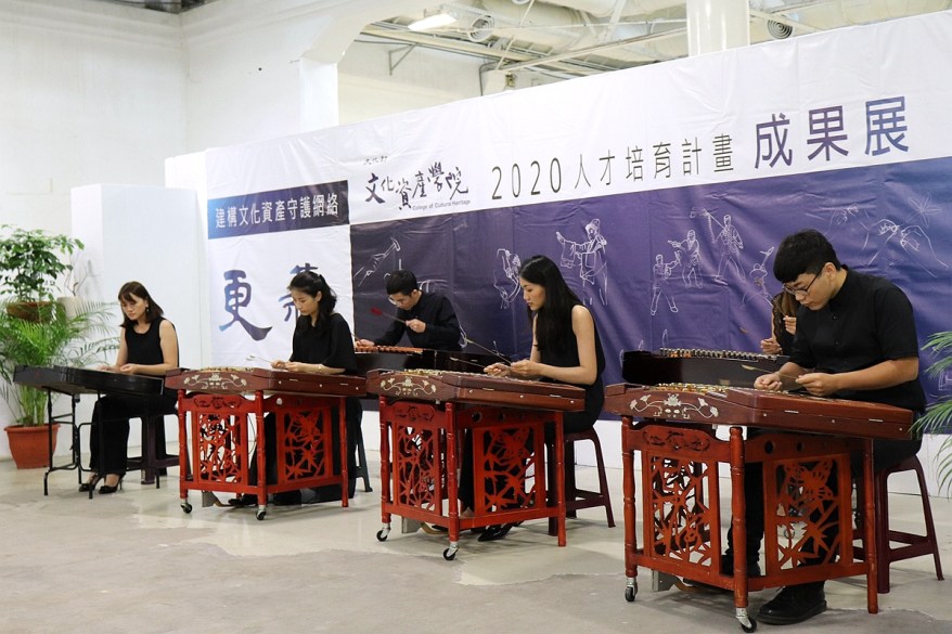 [新媒社 記者張銀澤/台中報導] 文化部文化資產局(25)日於台中文化資產園區舉行「文化部文化資產學院2020人才培育計畫成果展」開幕典禮,由文資局施國隆局長、雲林科技大學邱上嘉教授及文資學院「教學」、「產訓」、「研發」及「推廣」四大群組的計畫主持人們,共同為五年來所累積的能量與成果作見證,同時透過活動讓民眾有機會親近文化資產的場域,讓有形與無形文化資產的各種面貌、可能性與相關成果,以揚琴演奏做為開場,以紀錄影片、傳統工藝作品、計畫海報等模式呈現。