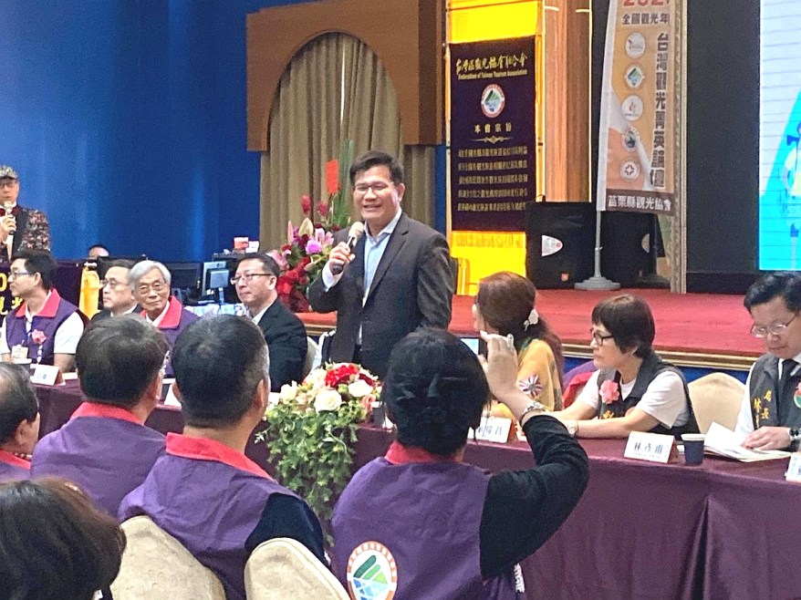 在中秋連假疏運繁忙之際交通部部長林佳龍也特別撥冗出席與會,向全國觀光業者表達關心與勉勵。林部長說,安心旅遊大爆發致補助經費不足,經與行政院努力爭取後,確定可以延期至10月底,可望會有1725萬人次出遊,帶動635億元的效應。林部長也提醒,還沒用完的三倍券,記得多多使用在觀汪旅遊,交通部一直持續輔導觀光業者轉型升級,讓疫情危機變成轉型生機。