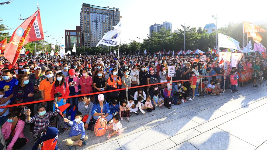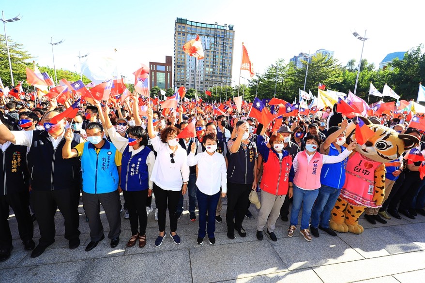 [新媒社 記者張銀澤/台中報導] 2020台中市政府(10)日在府前廣場舉辦國慶升旗典禮,現場突破2萬人潮,旗海飄揚,氣氛High爆,捷運綠線市政府站今日也首度開箱,上午就擠爆數千參觀人潮。市長盧秀燕表示,今年雖受疫情影響,但市府團隊化危機為轉機,台中購物節突破90億元、招商引資1800億元全台最佳,全力振興經濟,另外空污治理也逐步展現成果,今天藍天白雲就是最好證明。