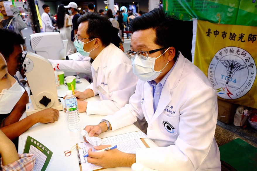 台中市驗光師公會張君銜理事長為了共同支持護眼議題,也動員了公會驗光師在現場協助民眾眼睛檢篩服務,現場呼籲民眾視力保健及驗光觀念,一起守護靈魂之窗。