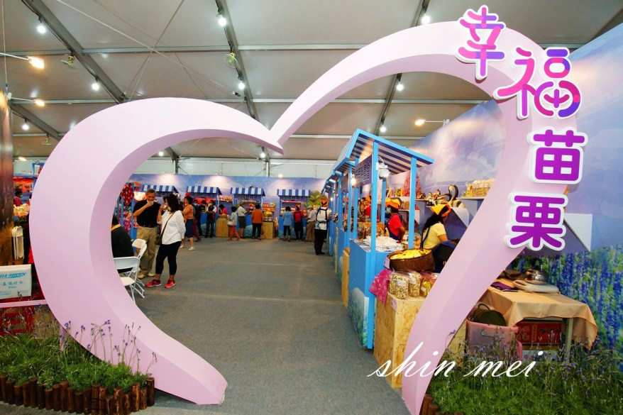 『幸福苗栗館』透過食、農、樂,以讓人放鬆的薰衣草香營造苗栗山城之美及人文風情,透過眼口香氣帶領進入苗栗休閒產業與認識優質農特產,秋天最鮮甜黃澄澄耀眼甜柿果大又甜又脆,全臺最大產量的草莓相關製品等,館內頭份東方美人茶、通霄蜂蜜、銅鑼杭菊、三灣酸柑茶、三義苦茶油、公館紅棗、芋頭等眾多項優質農特產品讓大家嚐甜選購外,還有DIY教學活動,用漫遊薰衣草園的心情來尋找幸福好滋味。