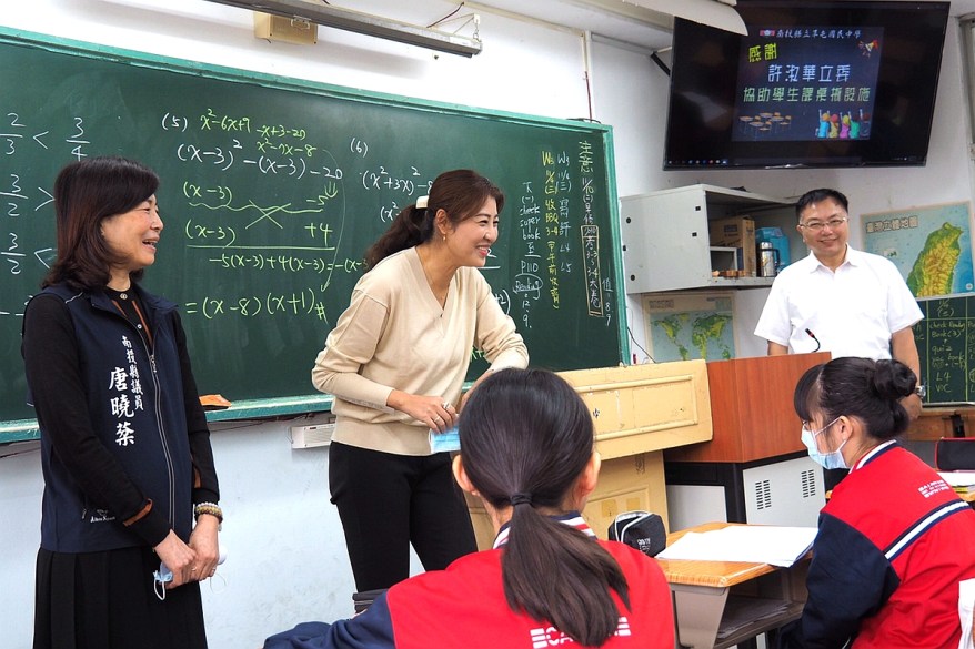[新媒社 記者張銀澤/南投報導] 校園硬體設備與孩童的骨骼發展及學習質量息息相關,立法委員許淑華再牽線公益事業來到草屯國中,並與縣府教育處處長陸正威、縣議員唐曉棻、草屯鎮民代表會副主席沈玉貞、代表簡錫彬、和平里里長李永裕及敦和里里長王逸帆,一同捐贈可調式課桌椅給校方,期盼這些符合人體工學設計的可調式課桌椅不僅能提升縣內教育硬體設備,還能同時保護孩童的骨骼健康。