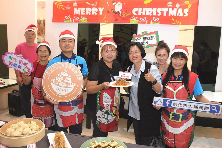 [新媒社 記者黃嘉雯/彰化報導] 2020彰化市大埔商圈連續3屆都秒殺的大埔小吃宴,今年第四屆主題「聖誕趴歡樂送」,以聖誕大餐的方式,將於12月5日在彰化市延平公園熱鬧開趴,今(19)日上午於彰化市福泰飯店召開記者會,彰化縣長王惠美、彰化市大埔商圈發展協會理事長陳雯嘉等人與會邀請喜愛小吃美食的鄉親儘速報名,且用餐時只要穿著具聖誕氣息的紅色、白色或紅白相間服裝出席,還可獲得歡樂禮一份,不僅有吃、有喝、有玩還有禮物拿,讓大家有個難忘的聖誕餐聚。