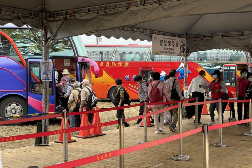 交通局表示,今年新社花海提供豐原線、太原線、東勢線(假日線)及櫻木花道線(假日線)等4條接駁路線,這個週末開始,假日再加開捷運松竹站接駁線,接駁站點分別為豐原火車站、北屯太原停車場、東勢河濱公園、花海展區及捷運松竹站,去程發車從上午8點至下午4點、返程發車從上午10點至下午6點,平日平均20至30分鐘一班、假日15至20分鐘一班,坐滿即發車。此外,配合防疫,乘車時請全程佩戴口罩、並配合體溫量測與填寫實聯制登記表。