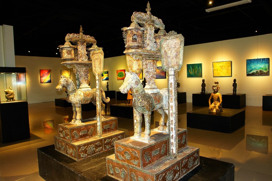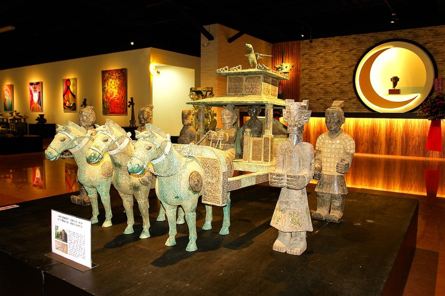 三星堆是中國西南地區的青銅時代遺址,位於四川廣漢南興鎮,自1929被一位老農民發現之後,│陸續挖掘出許多祭祀坑,坑內大多埋放玉石器和青銅器。出土有大量青銅器、玉石器、象牙、貝、陶器和金器等,金器中的金杖和金面罩製作精美,青銅器除罍、尊、盤、戈外,還有大小人頭像、立人像、爬龍柱形器和銅鳥、銅鹿等。其中,青銅人頭像形象誇張;立人像連座高2.62米,大眼直鼻,方頤大耳,戴冠,穿左衽長袍,佩腳鐲,充滿著神秘的色彩,據考古學家研究這些文物屬於3000-5000年前,三星堆文化來自何方?三星堆人究竟是何方民族?古蜀國是如何誕生又如何消失?大量的青銅器祭祀品意味著什麼? 如今仍是歷史的謎團。想要瞭解三星堆文化,現在不需遠飛中國四川,到新社明月居博物館便可一窺究竟。